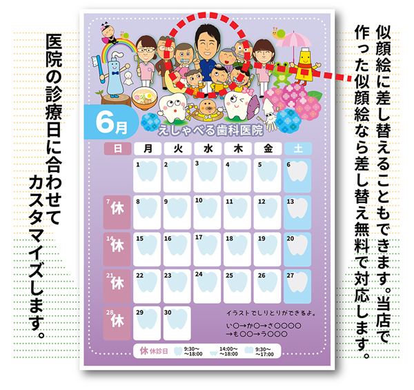 休診日をカレンダーに記載してA3あるいはA4サイズのPDFデータとJPGデータとしてお渡しします。